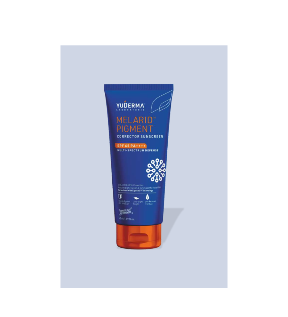 MELARID PIGMENT Corrector Sunscreen offers SPF 65 PA++++ protection while reducing dark spots and promoting an even skin tone.