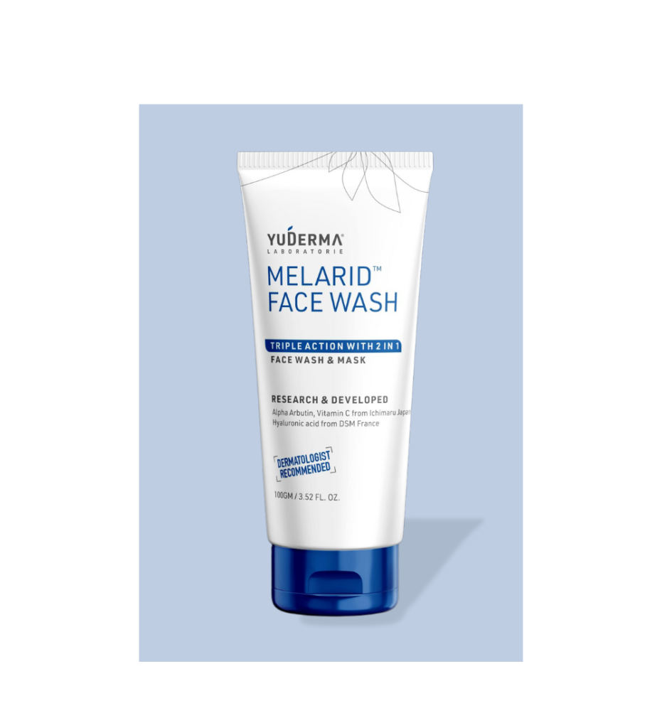 MELARIDⓇ Triple Action Face Wash & Mask deeply cleanses, gently exfoliates, and helps brighten the skin, removing impurities and excess oil for a fresh, clear complexion.