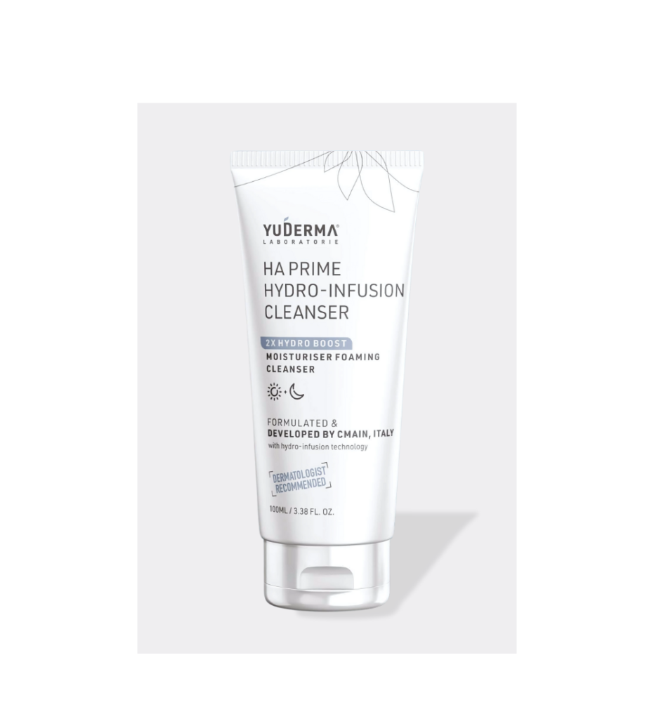 HA Prime Hydro-Infusion Cleanser gently removes dirt and oil while hydrating and refreshing the skin, maintaining its natural moisture balance.