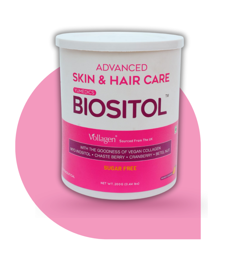 Biositol — a vegan collagen-boosting skin and hair care powder that supports elastic, hydrated skin, healthy hair growth, and overall hormonal balance with plant extracts, vitamins, and bioactive ingredients for radiant skin and stronger hair.