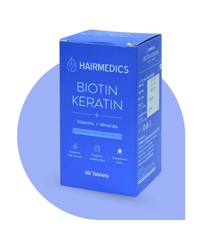 Biotin and keratin help strengthen hair, reduce breakage, and support healthier‑looking growth — biotin boosts your body’s keratin production (the main hair protein), while keratin reinforces strand structure for stronger, more resilient hair.
