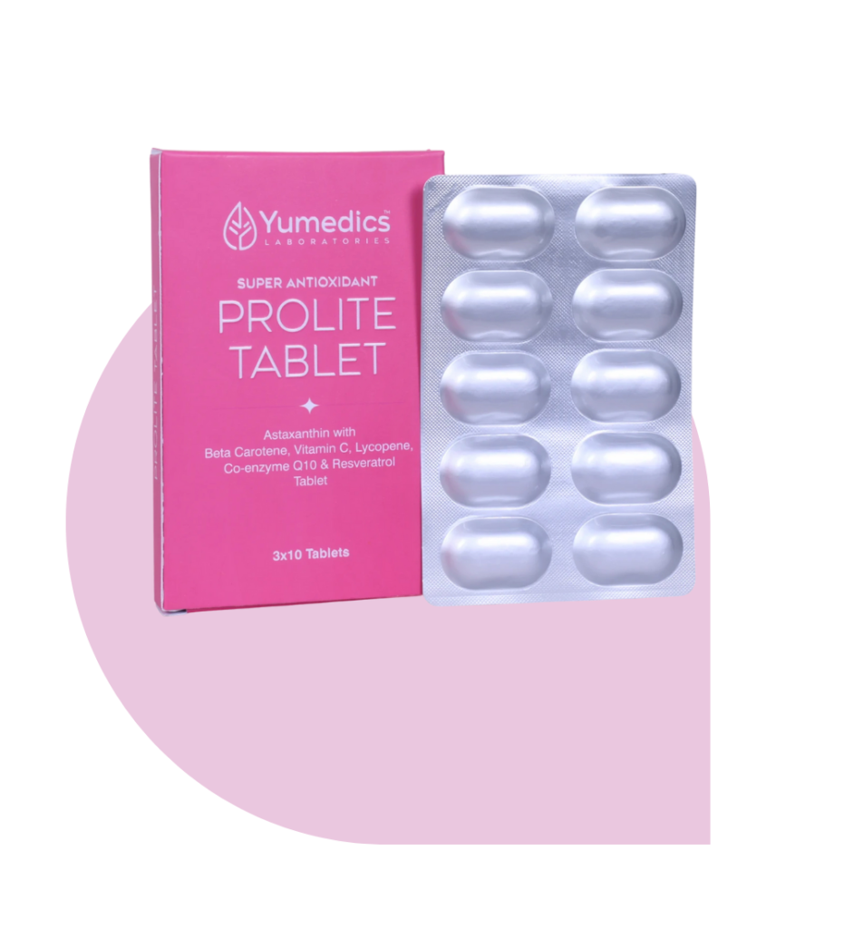 Prolite Tablet — a daily skin‑health supplement with antioxidants that helps brighten complexion, reduce sun‑induced pigmentation, protect against oxidative stress, and support healthier, more even skin from within.